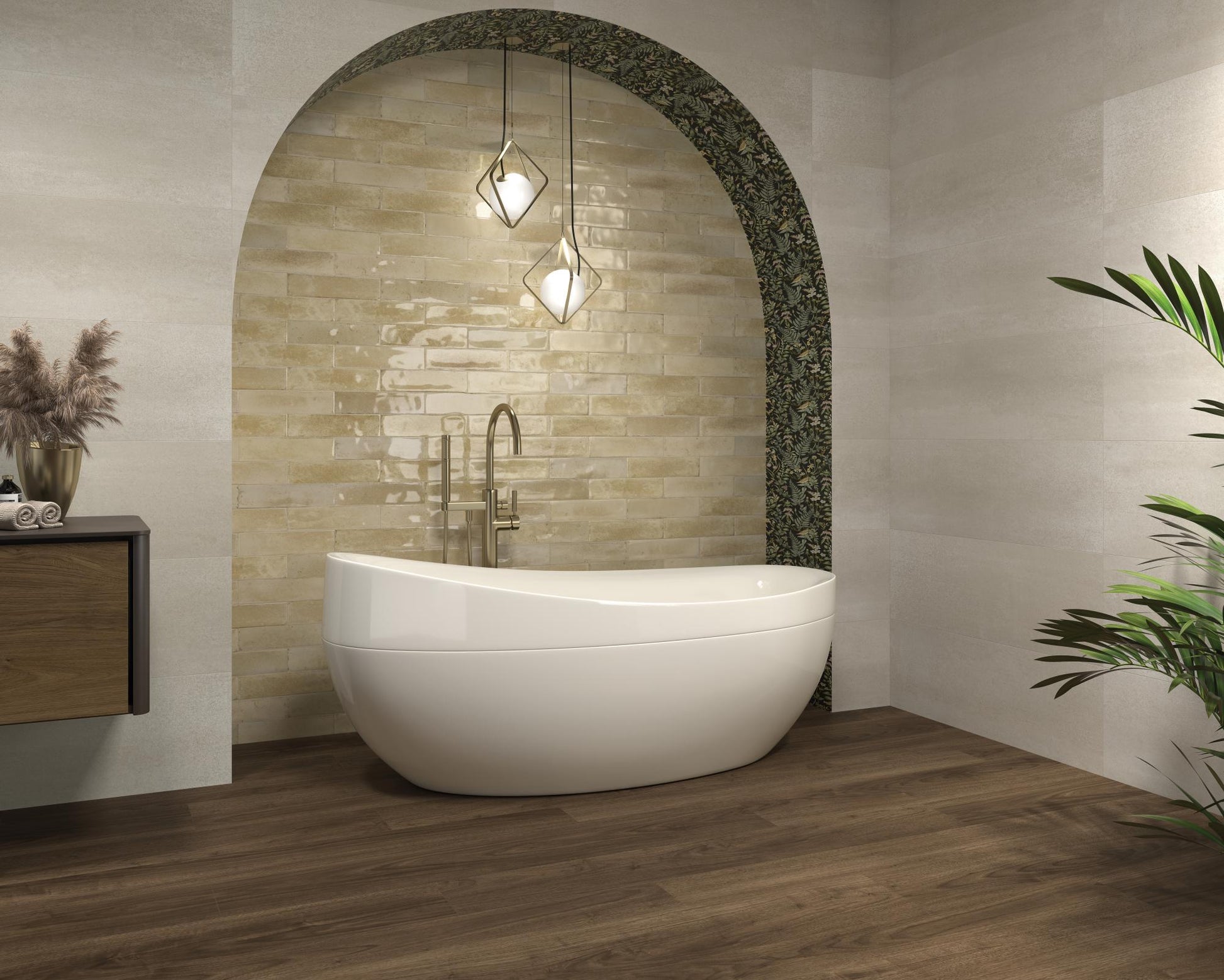 Inspirat de frumusețea zellige-ului tradițional, Musgo prezintă un relief neregulat care îi evidențiază caracterul artizanal, creând un joc fascinant de lumini și umbre. Formatul său alungit permite diverse configurații de instalare, cum ar fi modele herringbone sau aliniamente orizontale și verticale, oferind dinamism și versatilitate în designul interior.