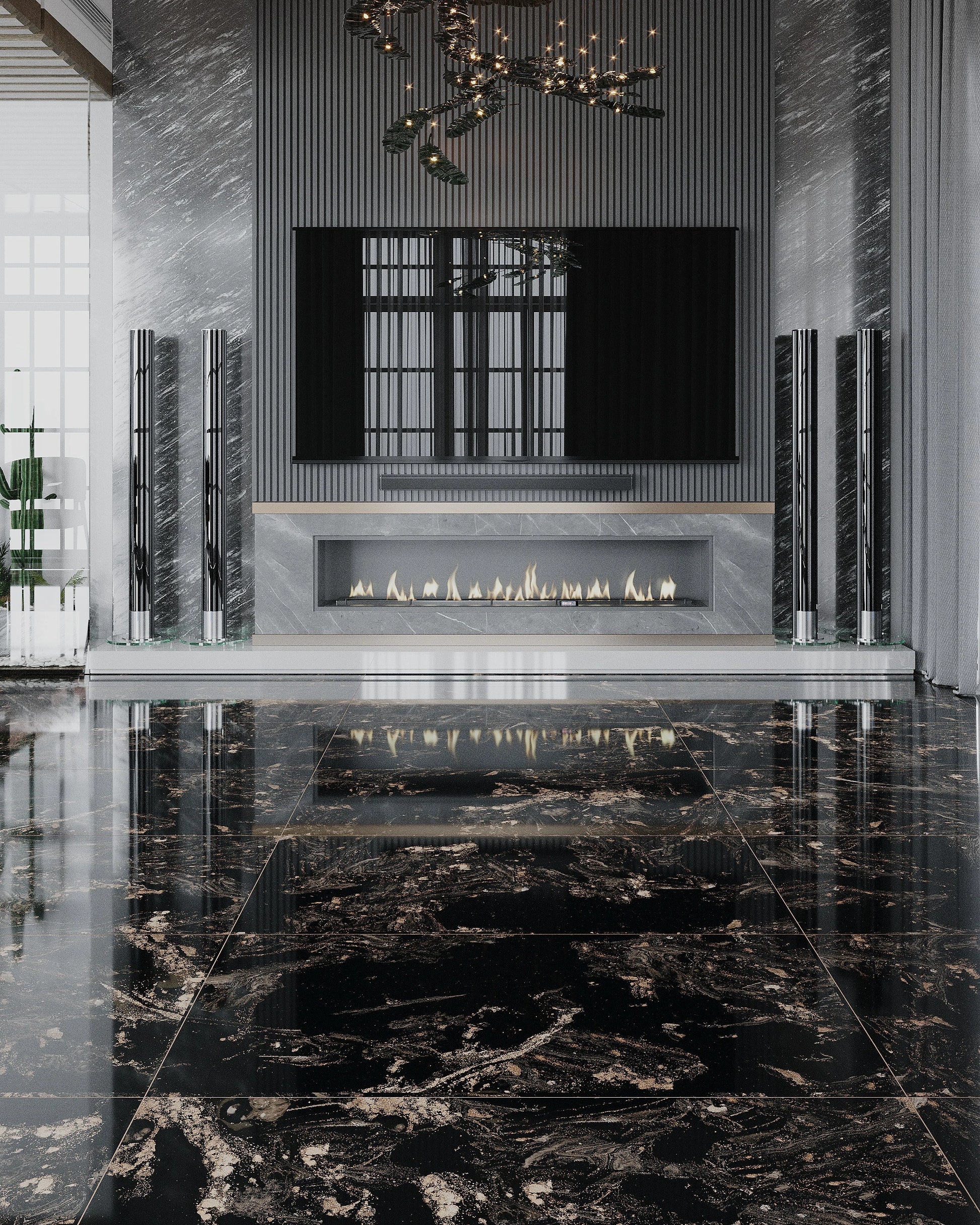 Gresie M. Black, rectificata, portelanata 60x120 ,negru ,lucioasa