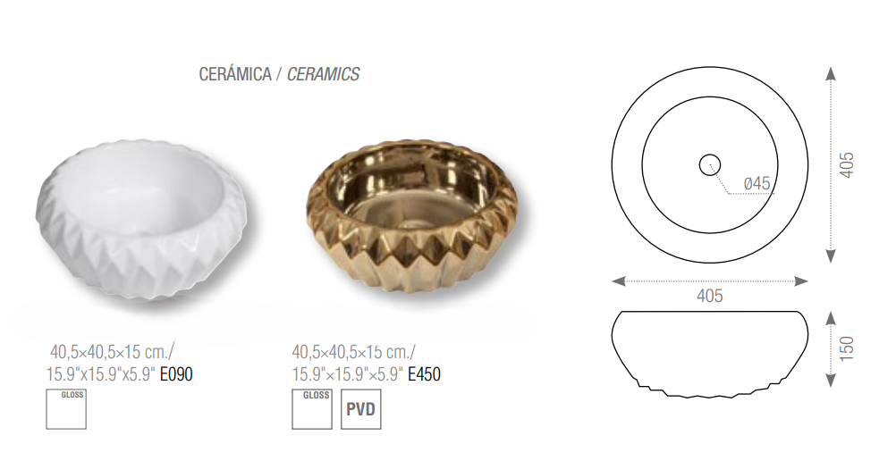 Chiuvetă elegantă din porțelan, cu un design original de diamant tăiat, unde lumina se reflectă în canelurile și diamantele de pe exterior.